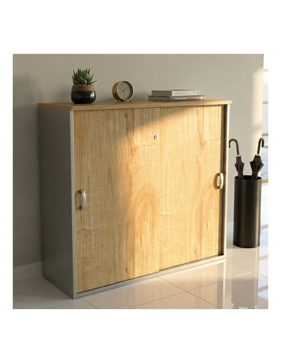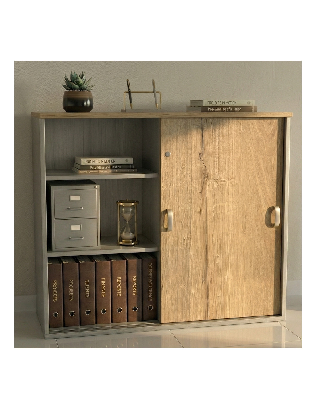 Armoire de Bureau Moyenne à Portes Coulissantes Mobel Linea : Le Design Bi-ton