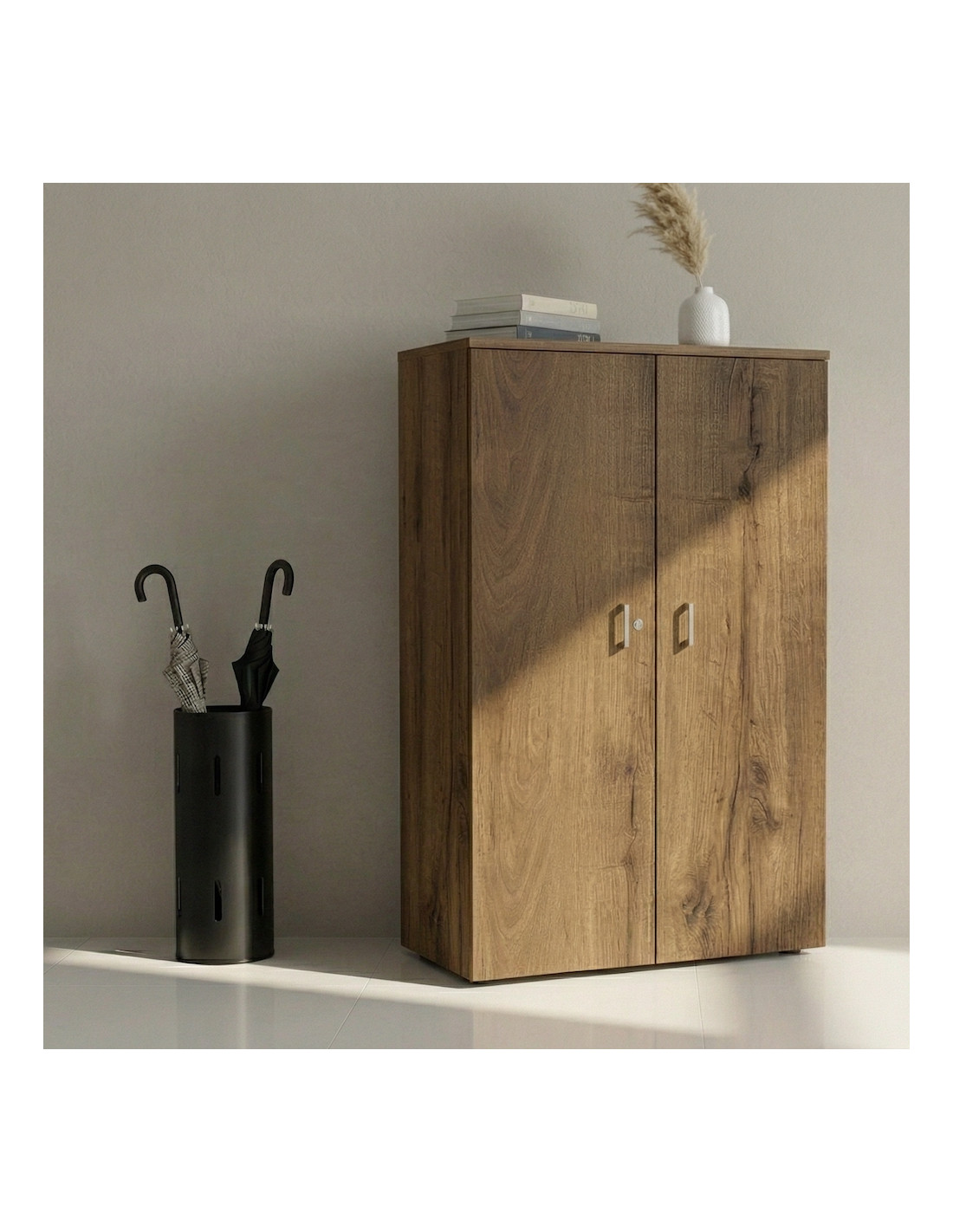 Au-delà de son design, cette armoire est un véritable outil de travail. Elle est équipée d'une fermeture centralisée avec serrure à clé pour sécuriser vos documents sensibles. Sa conception structurelle prévoit un "top" de finition de 25 mm d'épaisseur, assurant une stabilité parfaite même lorsque l'armoire est chargée de dossiers lourds.