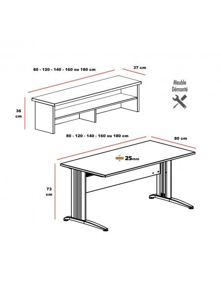 - Coloris du bureau : blanc, autre coloris voir nuancier