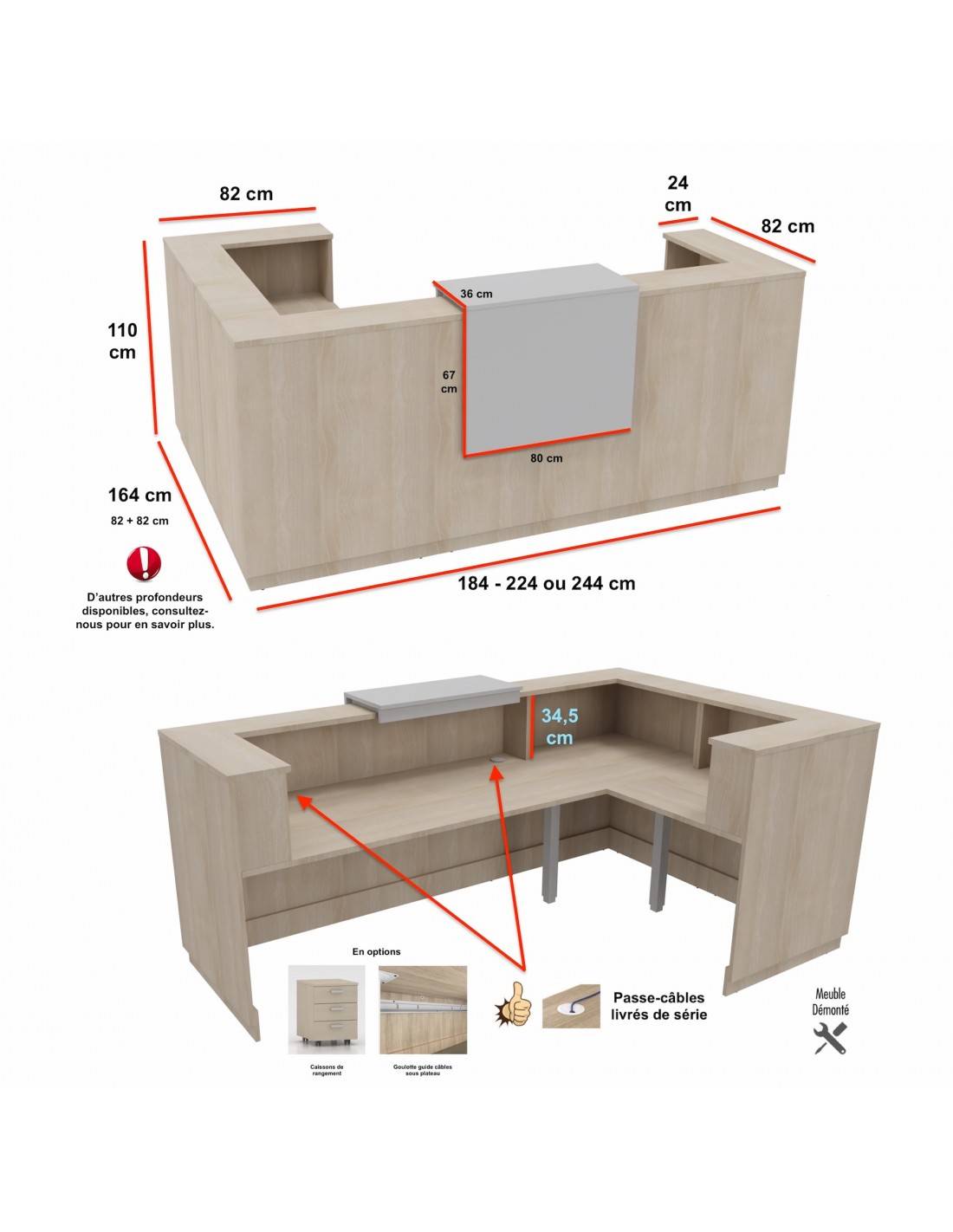A noter également que cette banque d'accueil dispose de tout un programme de rangement tels que les caissons, les armoires de bureau.
