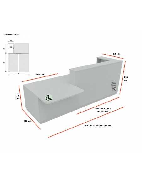 Cette banque d’accueil saura répondre de manière efficace aux besoins d’un espace professionnel et permettra de recevoir les personnes à mobilité réduite de façon efficace.