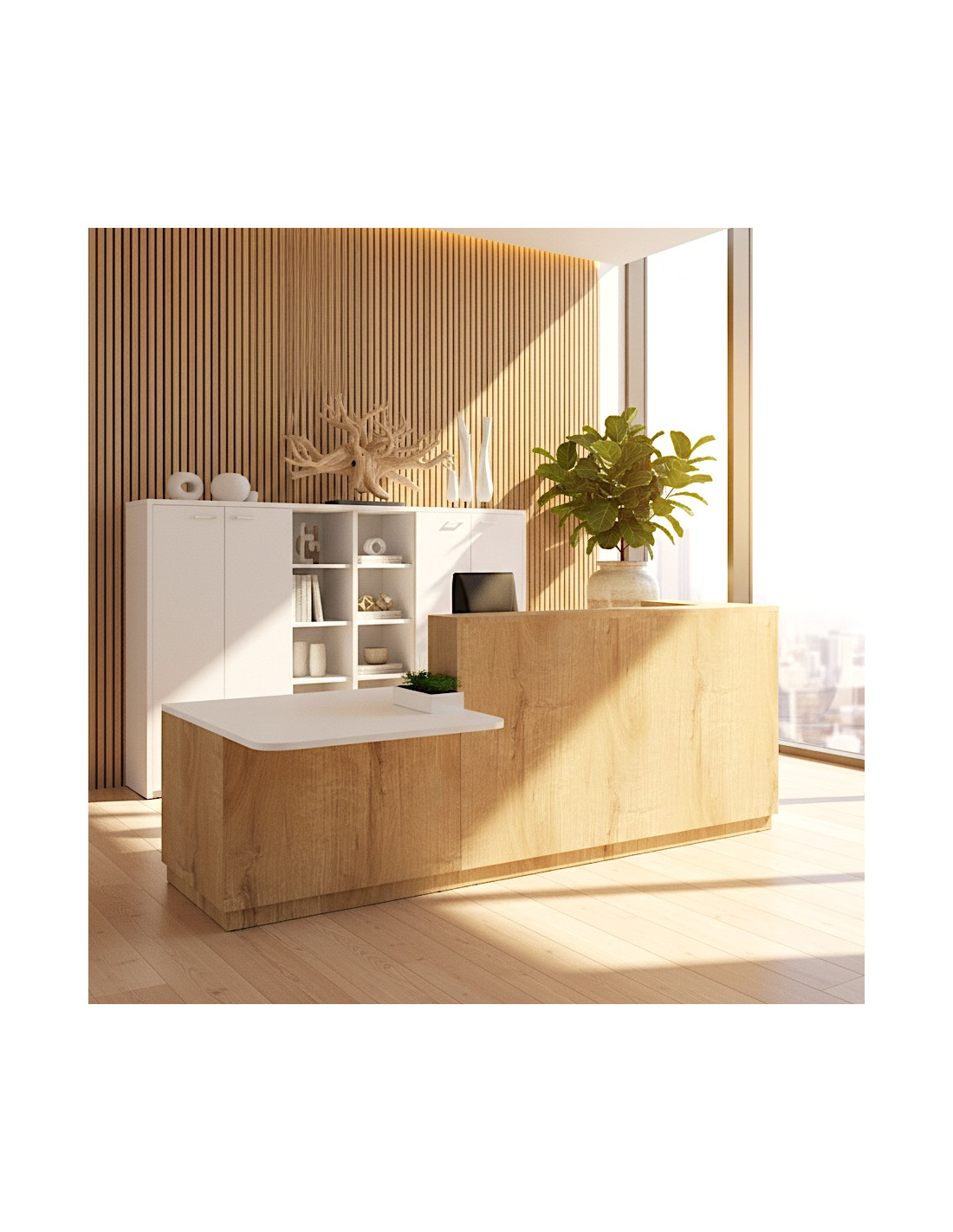 Conçu pour la durabilité, ce mobilier de qualité offre un espace de travail organisé et une expérience d'accueil optimale.