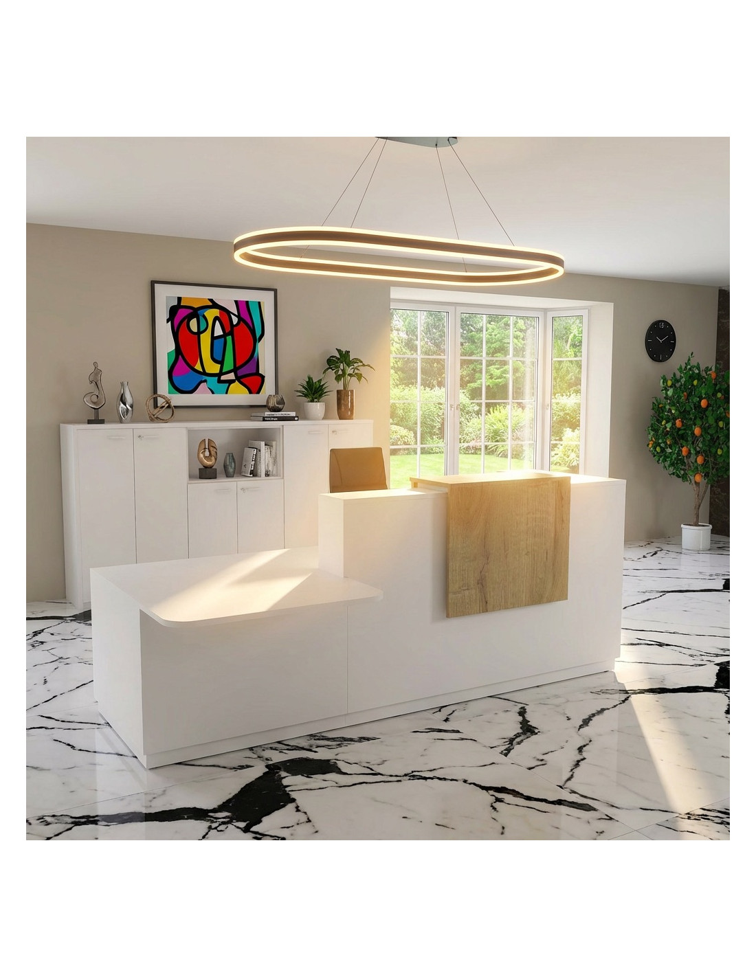 Fabriquée en mélaminé de haute qualité, cette banque d'accueil résiste à l'usage intensif et aux épreuves du temps.