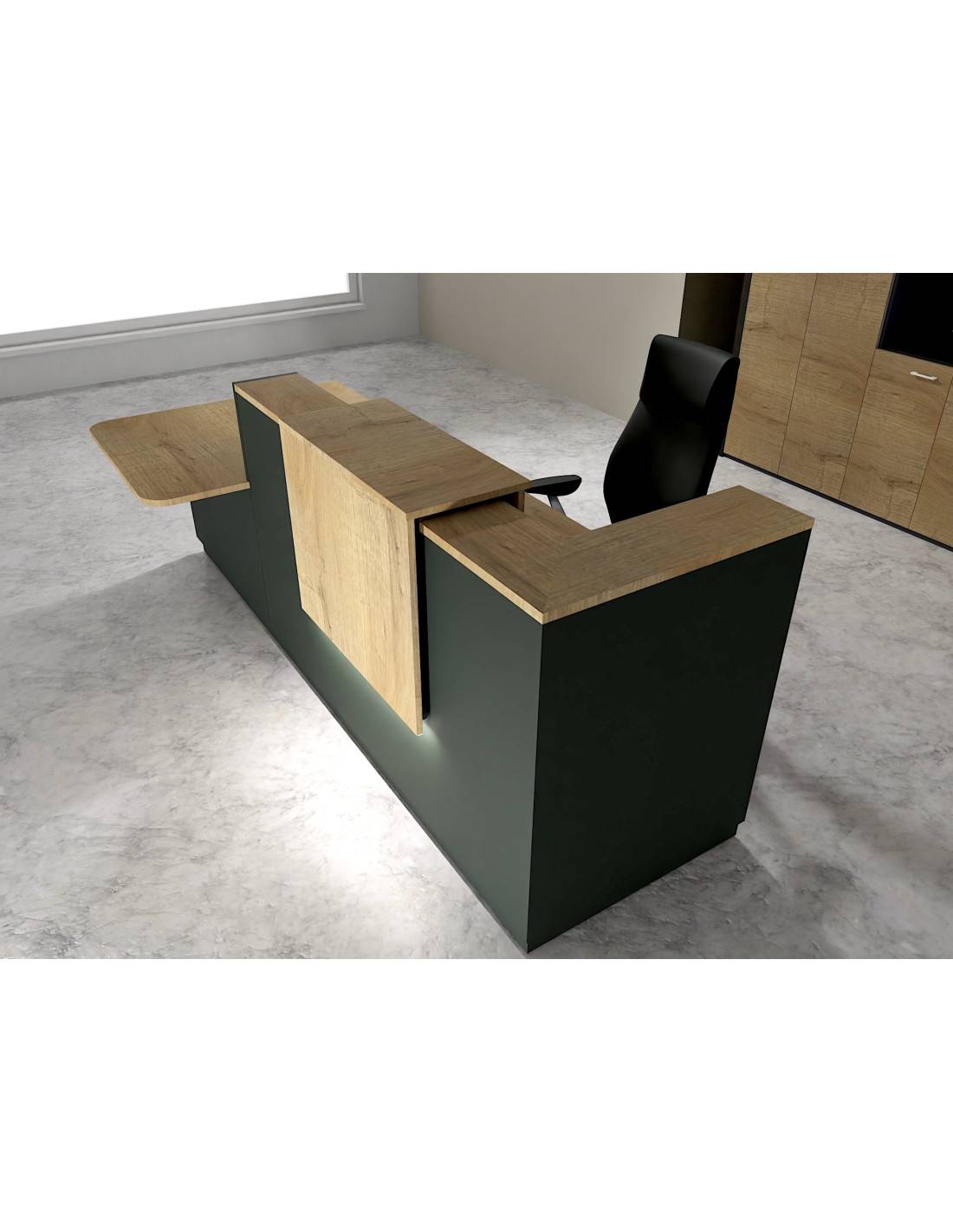 A noter également que cette banque d'accueil dispose de tout un programme de rangement tels que les caissons, les armoires de bureau.