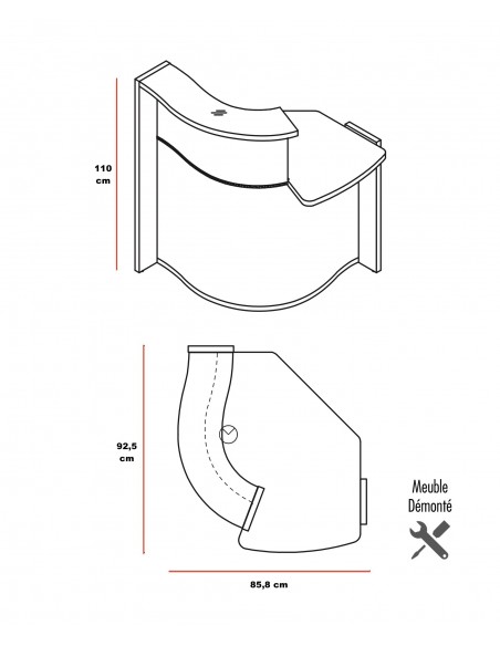 Ce petit bureau de réception dispose également d’un plateau bas pouvant se positionner à droite ou à gauche au choix.