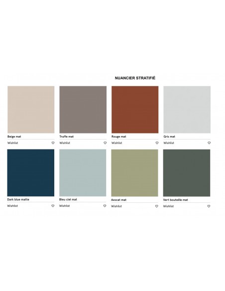 La façade de la banque d’accueil compacte Wave est réalisée en stratifié brillant ou mat suivant les teintes, à découvrir dans le configurateur.