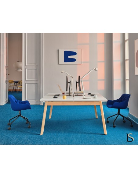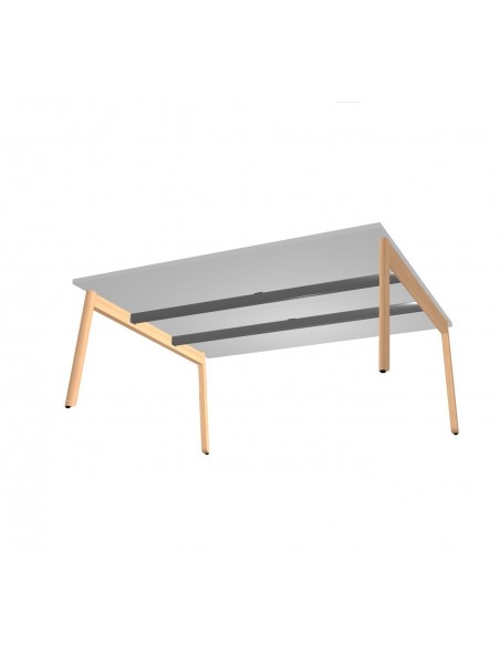 Chaque ensemble de 2 postes comprends 2 plans de travail indépendants reposants sur une structure en bois massif teinté naturel.