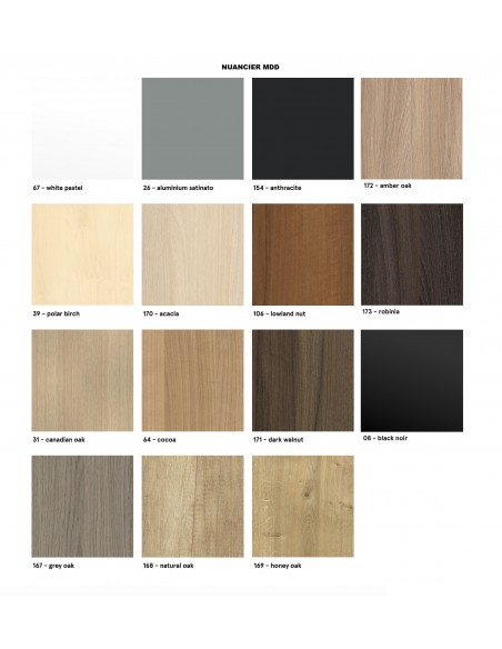 Le plan de travail de 28 mm d’épaisseur est réalisé en mélaminé comprenant 15 teintes différentes à découvrir dans le nuancier.