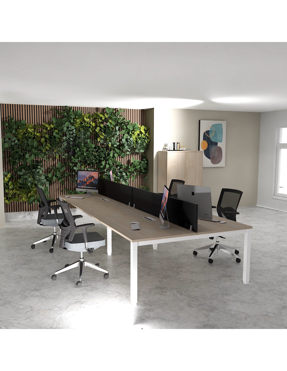 Le bureau bench Tempo est idéal pour les entreprises en croissance. Disponible en plusieurs largeurs (240, 280, 320 ou 360 cm) et conçu pour accueillir 4 collaborateurs, il offre une flexibilité incomparable.