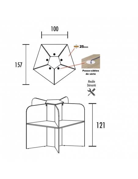 Le diamètre total de 157 cm optimisera votre espace de travail.