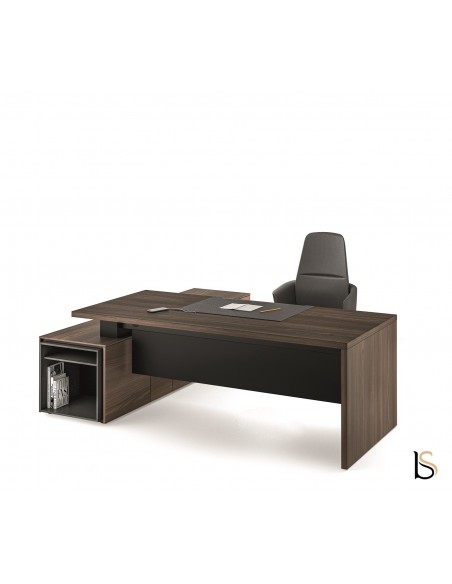 Le bureau de manager Sile de Bralco allie design élégant et fonctionnalité, avec ses finitions haut de gamme et son meuble de rangement intégré.