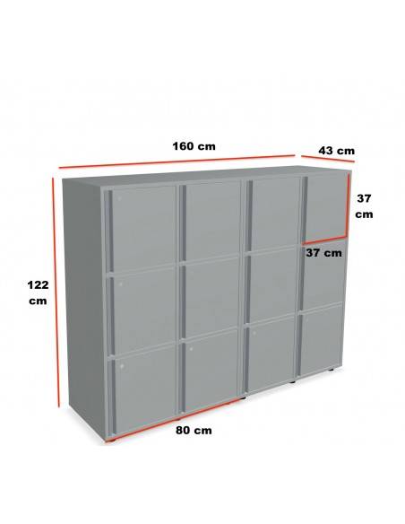 Chaque meuble propose 12 casiers spacieux, avec des dimensions optimales de largeur: 160 cm, profondeur: 43 cm et hauteur: 120 cm.