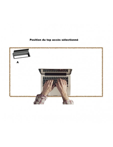 Le top access de notre usine partenaire Mobel Linea est très discret, il se place au centre de votre plateau ( voir schéma ) pour une organisation parfaite de vos câbles, vous pouvez le compléter avec la vertèbre ( voir ci-dessous ) pour une gestion optimale.