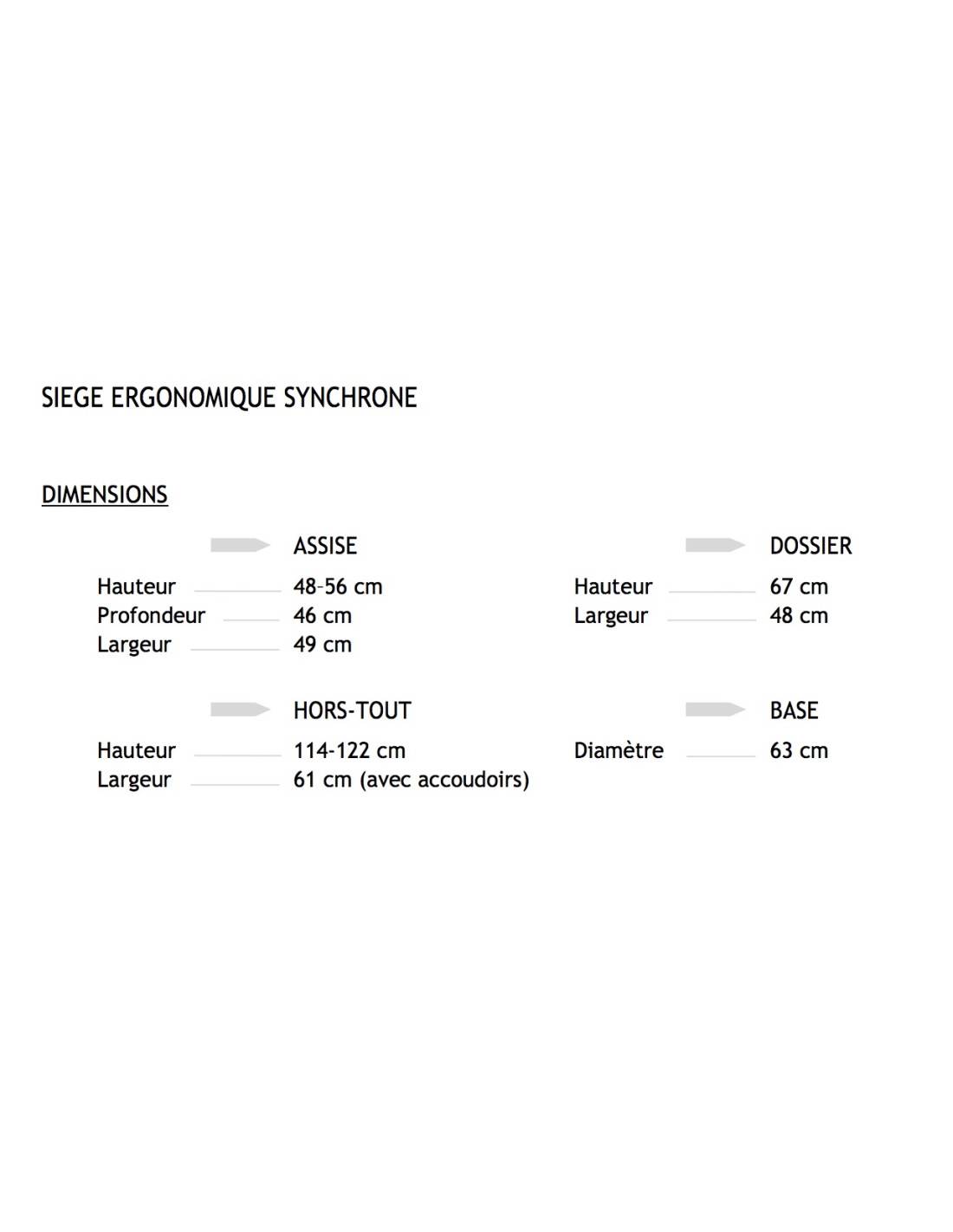Le siège Need est équipé d'un mécanisme synchrone auto-régulé qui permet un mouvement coordonné de l'assise et du dossier, favorisant une posture dynamique et réduisant la fatigue. L'assise est dotée d'une mousse injectée haute densité, recouverte d'un tissu noir résistant et respirant pour un confort d'assise exceptionnel. Le dossier en résille offre une excellente ventilation et un soutien lombaire réglable en hauteur pour prévenir les douleurs de dos.
