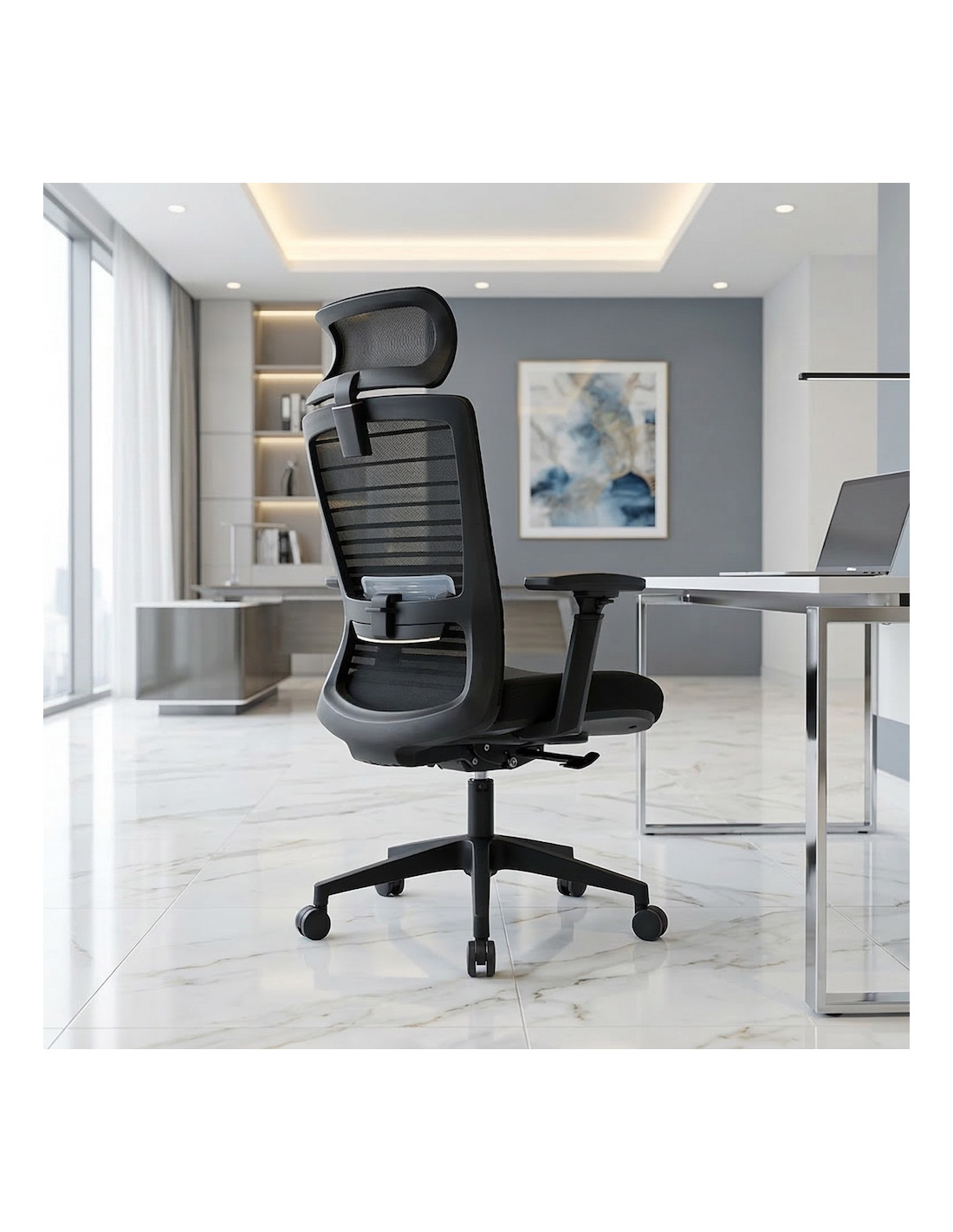 Ce siège de bureau est conçu pour s'adapter à vos besoins spécifiques. Il est réglable en hauteur grâce à un lift pneumatique, vous permettant d'ajuster l'assise à la hauteur idéale pour vos jambes. La têtière réglable offre un soutien supplémentaire pour votre cou et votre tête, réduisant les tensions cervicales. Les accoudoirs 3D, avec manchettes soft touch, sont réglables dans toutes les directions pour un positionnement optimal de vos bras et de vos épaules. La translation de l'assise permet d'ajuster la profondeur de l'assise pour un soutien parfait de vos cuisses.