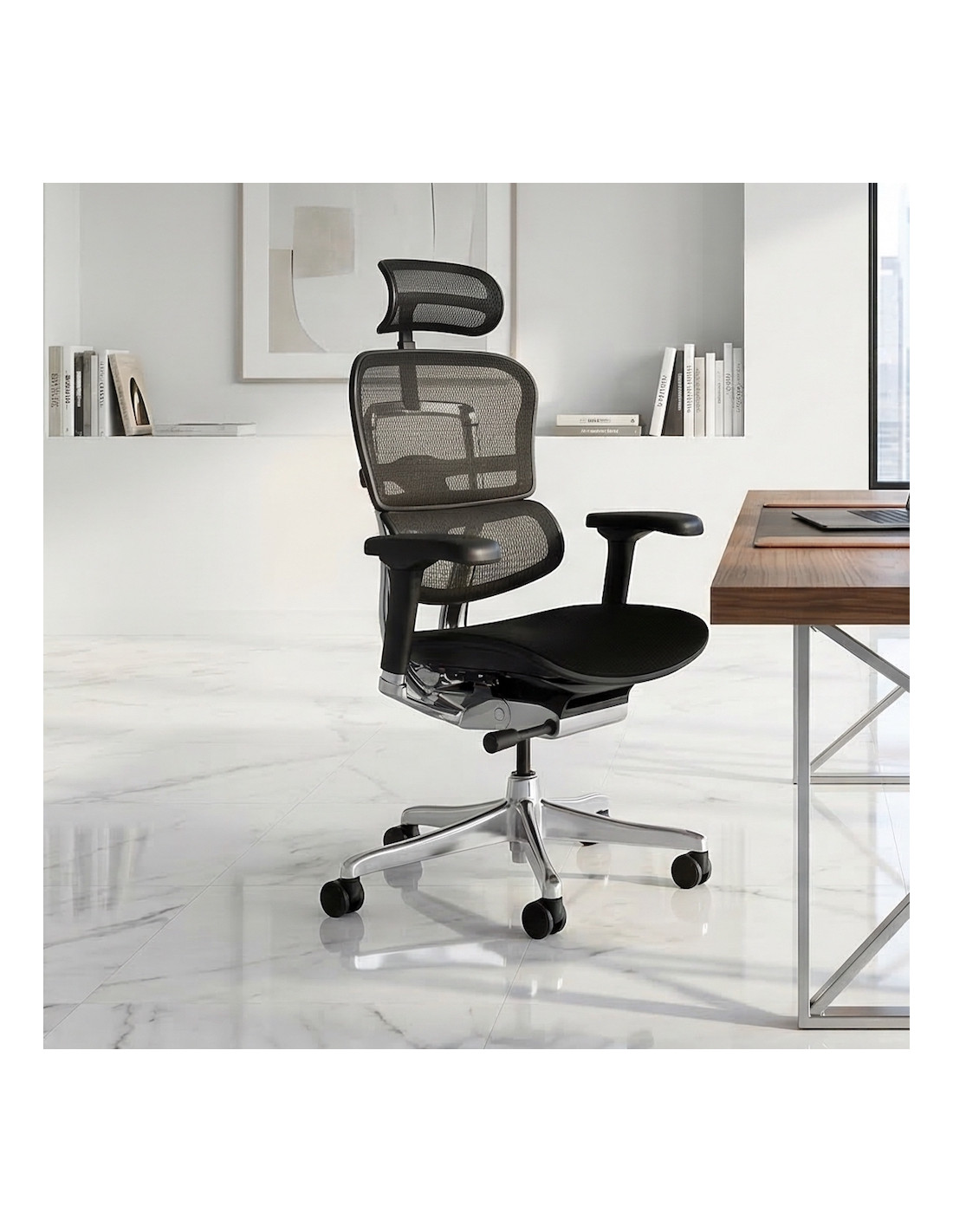 Le fauteuil de bureau ergonomique EHE2 est doté d'un mécanisme synchrone intuitif avec commandes par câbles, conçu pour un usage intensif et prolongé. Sa structure de dossier en aluminium poli garantit une robustesse et une élégance intemporelles, un investissement durable pour votre entreprise.