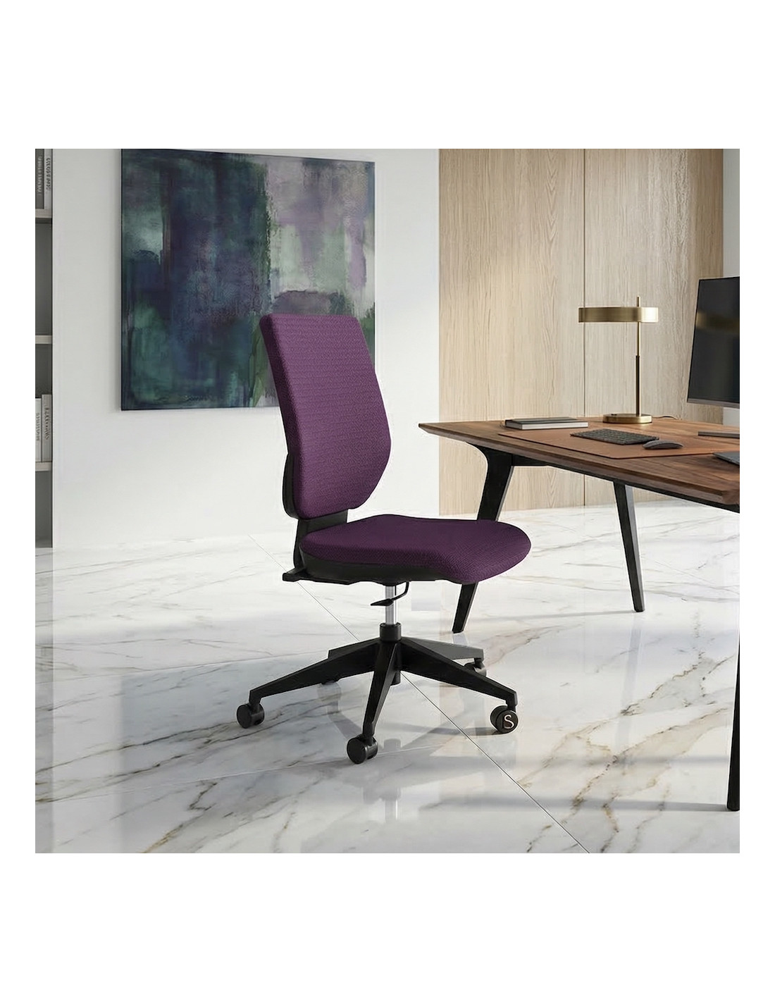 Le siège de bureau TERTIO est disponible dans 5 coloris de tissu tendance : noir, bleu, rouge, aubergine ou gris.