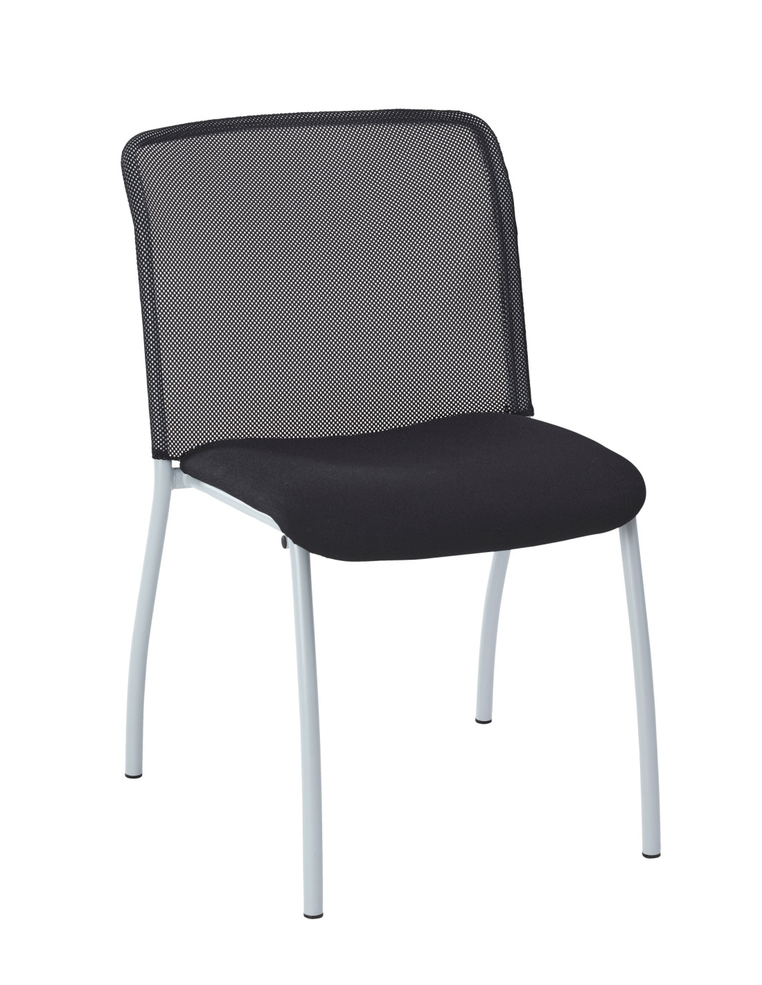 Chaise très confortable avec son dossier en résille autoportante coloris noir, existe aussi en orange, rouge, vert, bleu, gris ou blanc ( sur commande ).