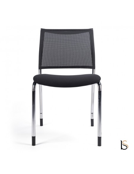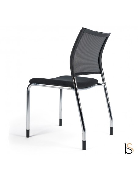 La structure chromée 4 pieds est empilable et dispose de patins ou de roulettes au choix.