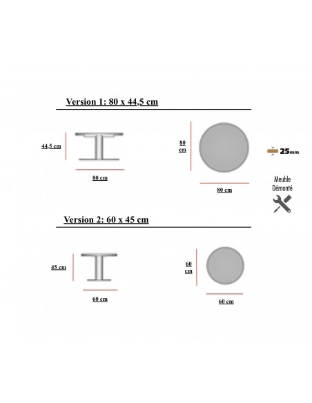Le plateau rond est disponible dans 2 largeurs : 60 ou 80 cm, à sélectionner via le configurateur.