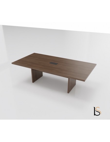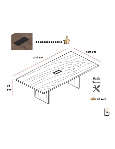 Nous vous proposons ici une table de réunion de forme rectangulaire équipée d’un top access au centre du plateau pour faciliter le passage des câbles électriques.