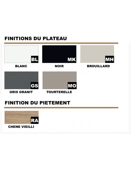- Coloris plateau: blanc, noir, brouillard, gris granit ou tourterelle