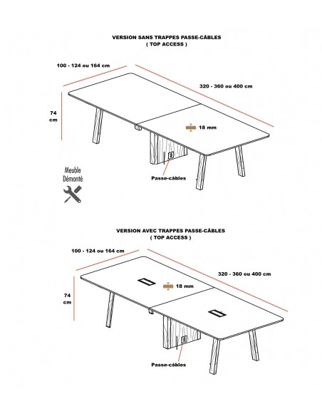 En fonction de vos besoins, il est possible de sélectionner des tops access via le configurateur pour faciliter le passage des fils sous la table.
