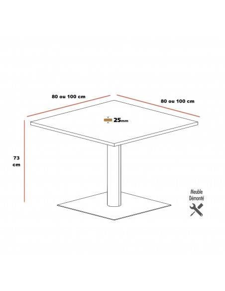 - Dimensions du plateau : 80x80 cm ou 100x100 cm