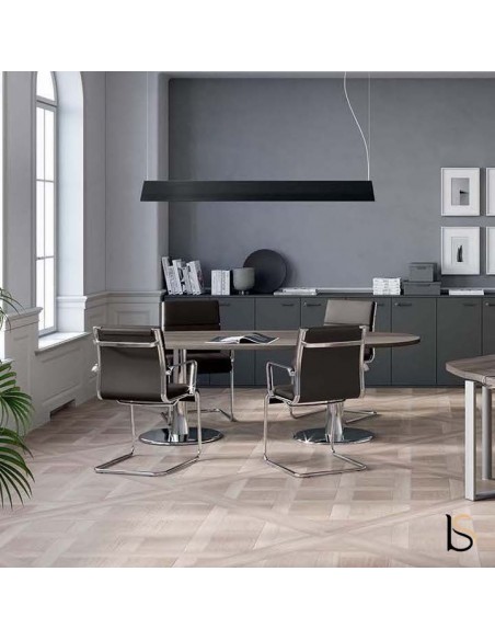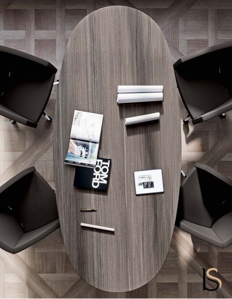 Cette table de réunion de forme ovale est fabriquée par notre partenaire Quadrifoglio, reconnu dans le monde pour son design et sa qualité de fabrication.
