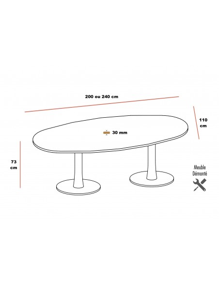 Afin de réaliser une installation harmonisée, cette table de conférence peut être complétée de bureaux, d’armoires assortis.
