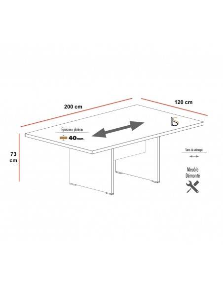 L’épaisseur du plateau et des piètements sont de 40 mm rendant l’ensemble massif et très stable.