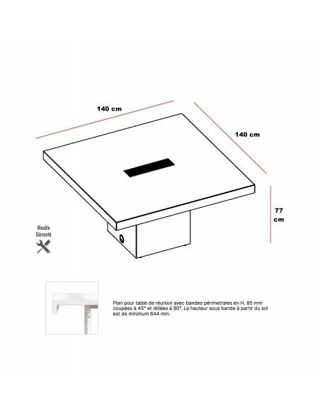Avec ses 140 cm de côté, la table T45 dispose d’un plateau relativement agréable pour recevoir vos collaborateurs dans de bonnes conditions.